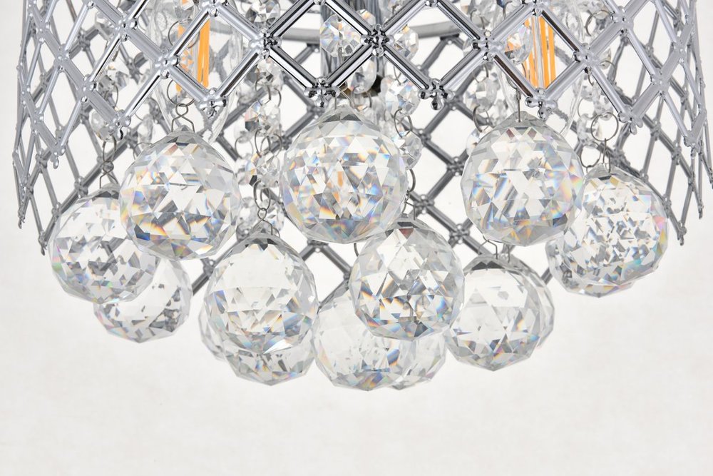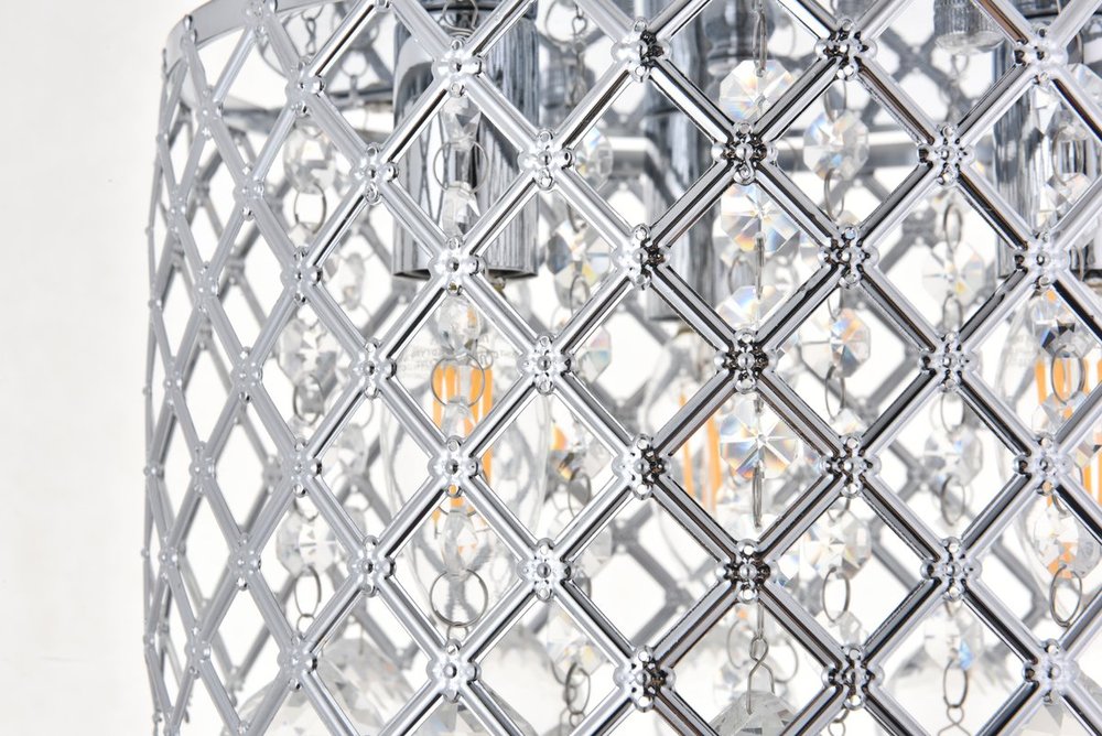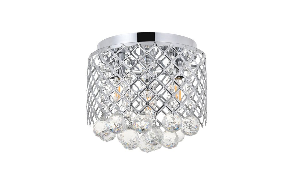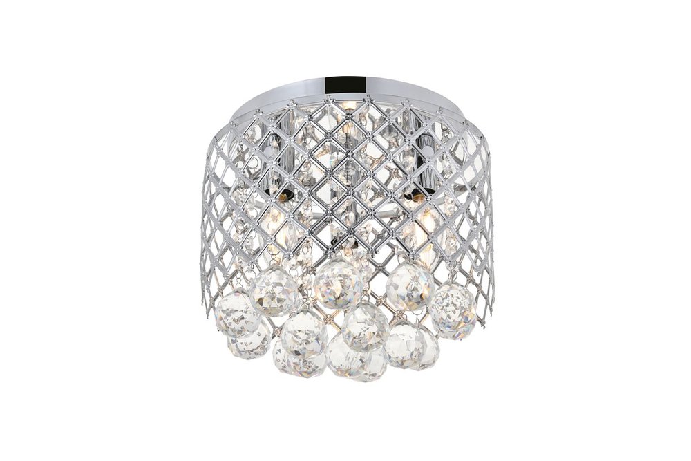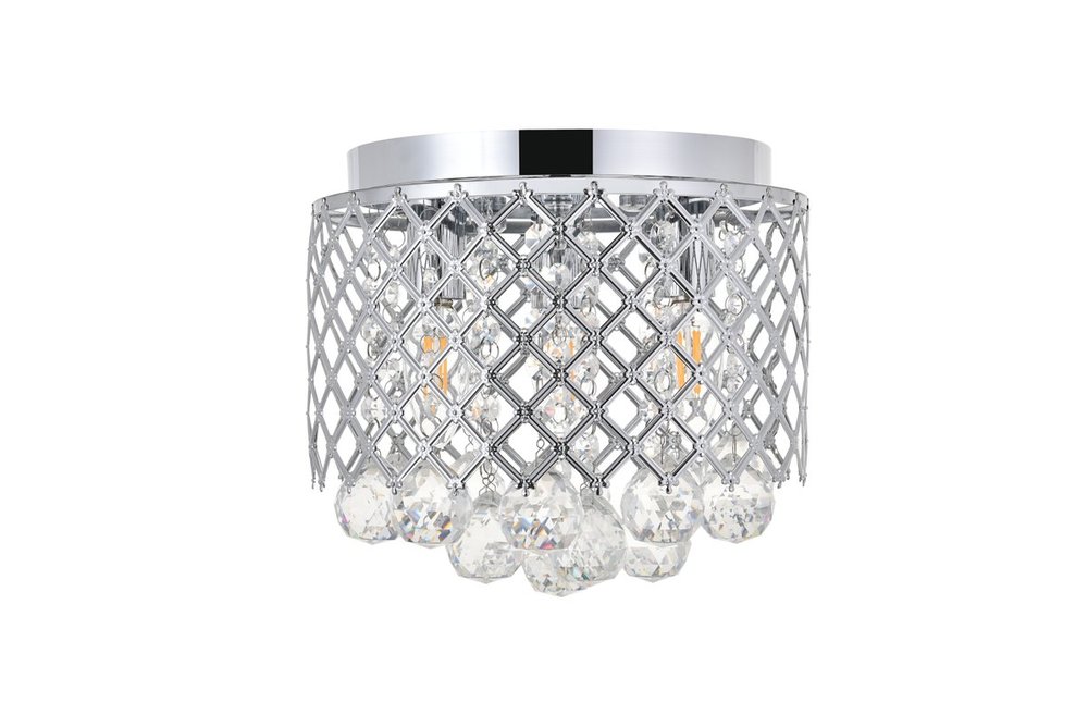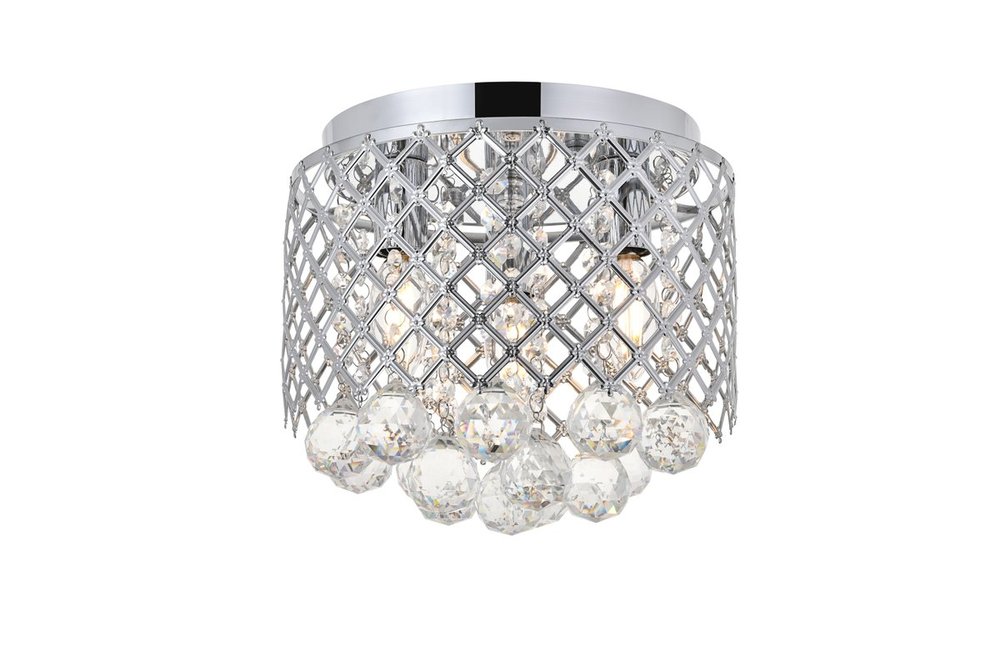 Enjoy the shimmering beauty of the Tully flush mount in a chrome finish. The elegant lattice metal curtain allows for the hanging crystals to play and dance around the illuminating light, with larger crystals at the base peeking out to say hello. Lights on or off, this flush mount will surely make quite a statement in your home!