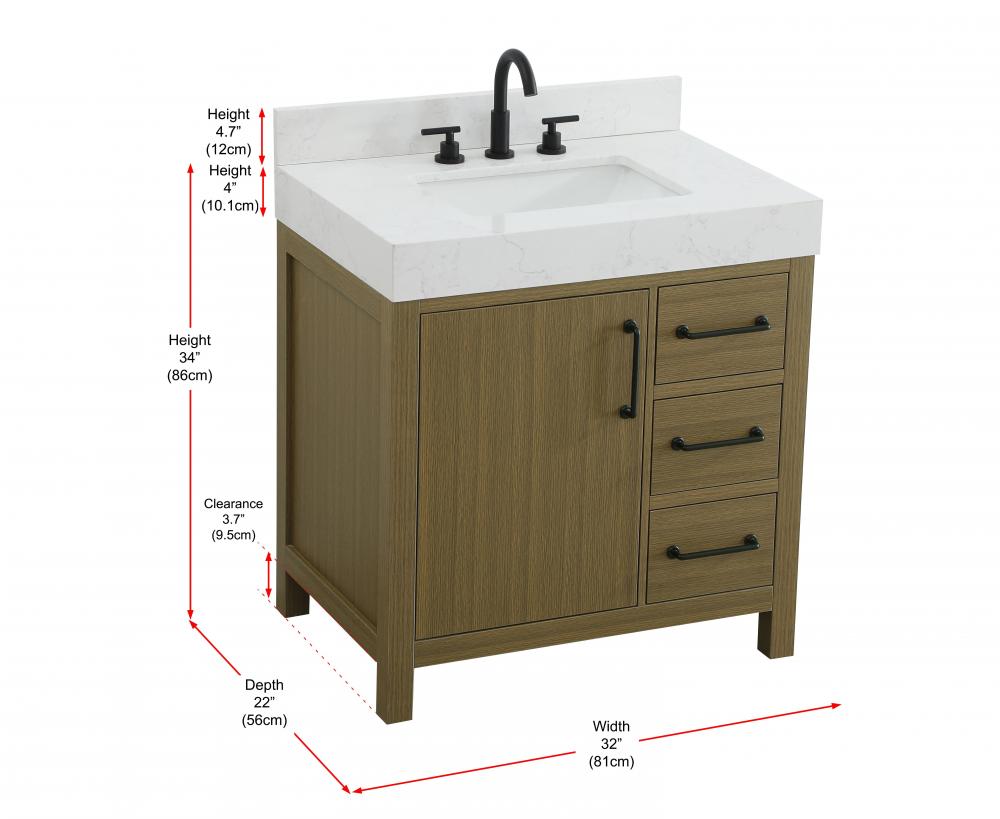 Vanity Cabinet 1DR 3DW 32"W x 22"D x 34"H Chestnut Brownw/BS