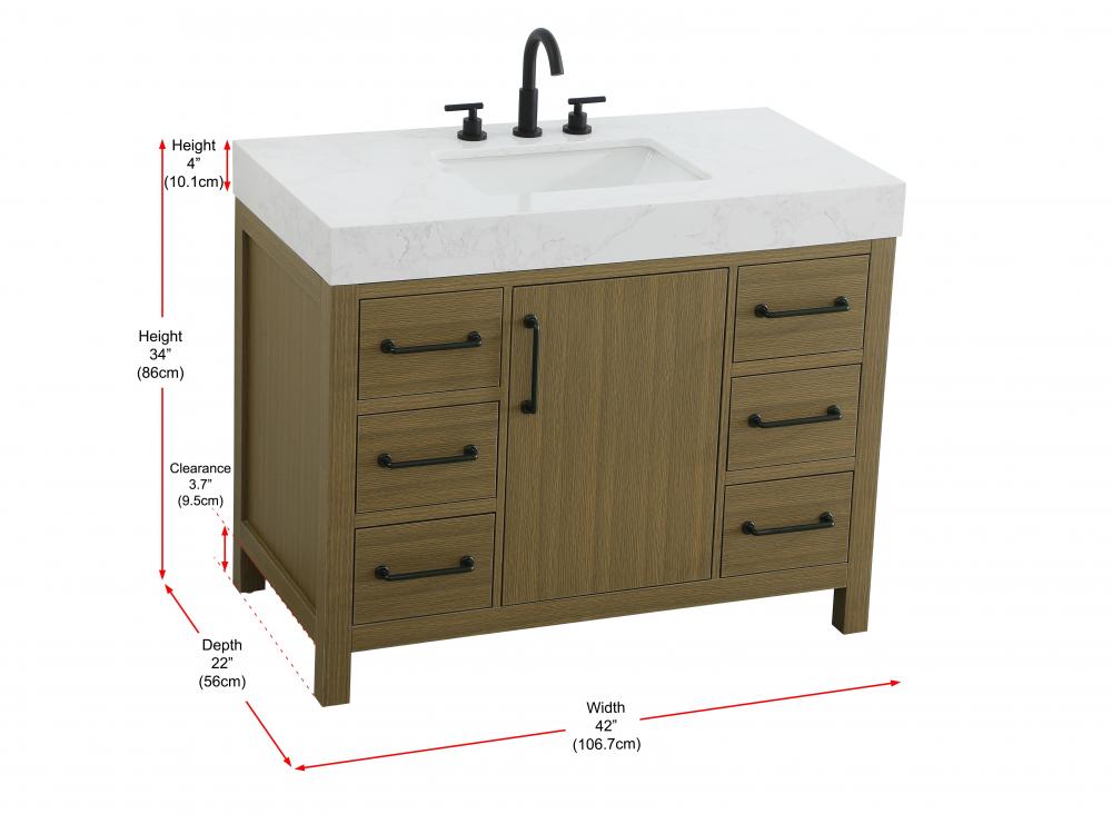 Vanity Cabinet 1DR 6DW 42"W x 22"D x 34"H Chestnut Brown