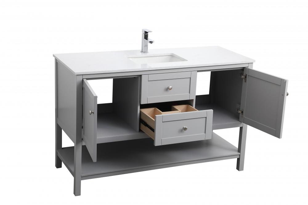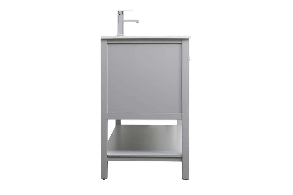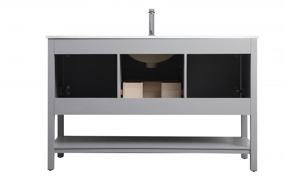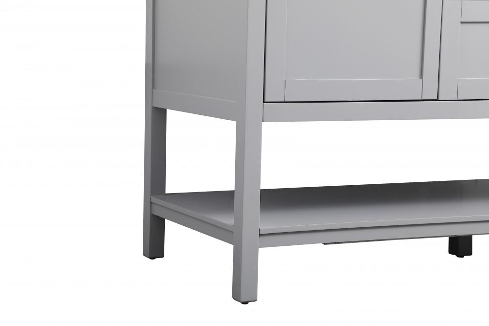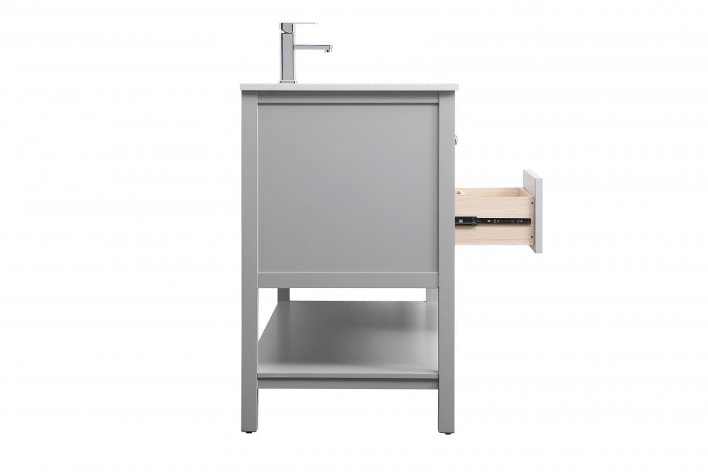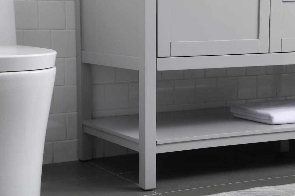 Boasting a lower open shelf for additional storage, this vanity offers a practical area to display decor or stow away essentials, seamlessly blending functionality with a touch of style for your bathroom.