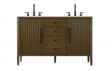 The vanity stands on thin tapered legs with levelers, adding a modern, airy touch while ensuring stability.