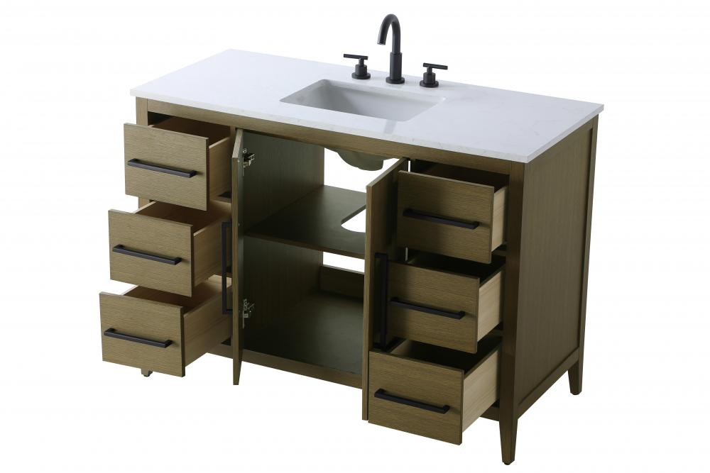 Built from sturdy MDF wood, this vanity is designed for long-lasting durability, offering both quality and style in one complete package which arrives fully assembled.