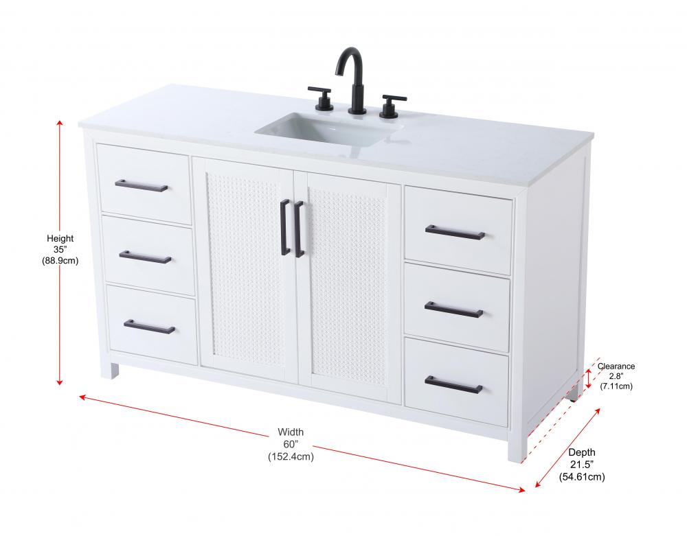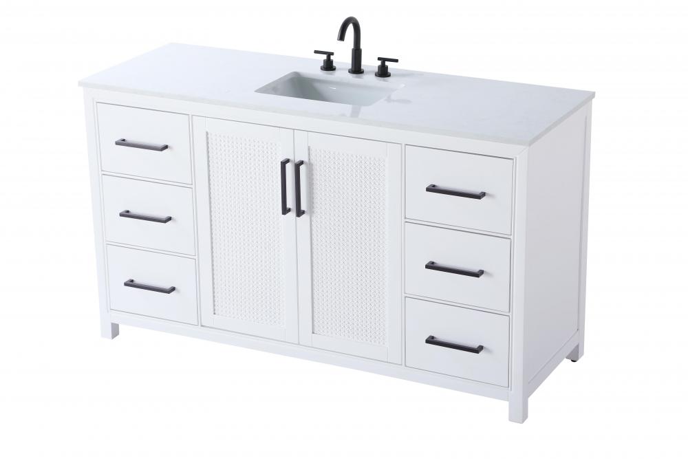 Perfect for those with an eye for detail and quality, this transitional vanity blends modern design with timeless elegance. Available in five stunning finishes, from Crisp White to Linen Oak, the wood grain visuals of the oak options bring warmth and character to any bathroom. The caning design on the Shaker-style door panels adds texture and a touch of refinement, while the soft-closing doors and drawers ensure smooth, quiet functionality. Topped with a white engineered marble countertop, the vanity offers both luxury and practicality, complete with pre-drilled faucet holes for customization. A concealed overflow and U-shaped shelf for plumbing make installation effortless, and the slender black metal pulls provide a sleek contrast.