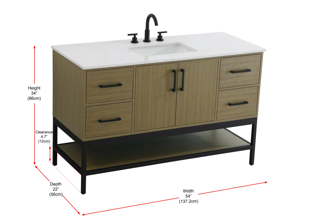 Elegant VF60754DMCB - Vanity Cabinet 4Dr2Dw 54"x22"x34" Chestnut Brown