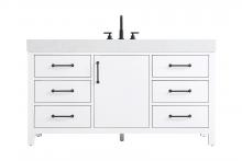 The engineered marble countertop stands out with its bold 4-inch thickness and natural veining, creating a commanding presence in any bathroom.