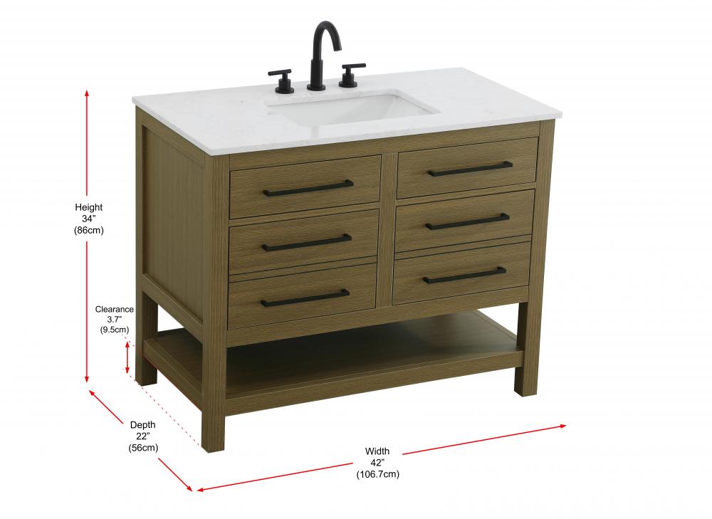 Vanity Cabinet 4DW 42"W x 22"D x 34"H Chestnut Brown
