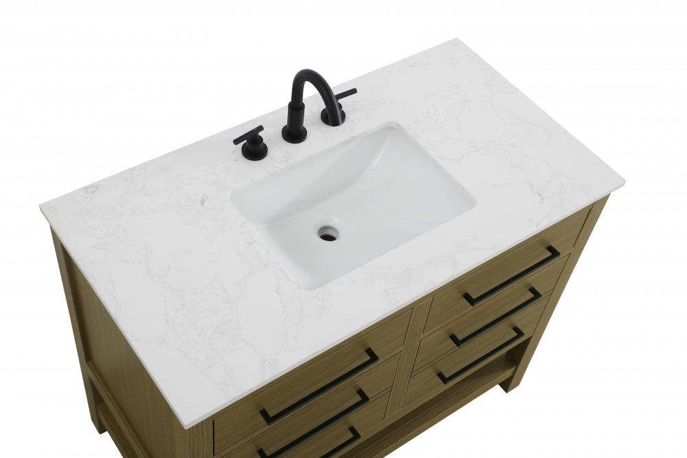 Elevate your bathroom design with this versatile and beautifully crafted bathroom vanity cabinet. The engineered marble top features striking veining, adding a luxurious focal point to your space. Built from premium solid wood and MDF, it ensures long-lasting durability and strength. The porcelain sink, complete with a concealed overflow, offers a seamless and refined finish.Available in four stunning finishes—Chestnut Brown, Honey Brown, Mocha Brown, and White—this vanity suits any interior style. Designed with convenience in mind, it features soft-closing drawers with modern handles and a tip-out drawer for easy access to small essentials, keeping your space tidy. The bottom deep drawer mimics the appearance of two separate drawers, providing ample storage for larger items, while the open shelf at the base offers additional storage space for towels or decor.Fully assembled for your convenience, it includes foot levelers for stability on any surface. For a complete look, pair it with an optional matching backsplash, sold separately. UPC certified for quality assurance, this vanity is the perfect combination of functionality, style, and ease of use.