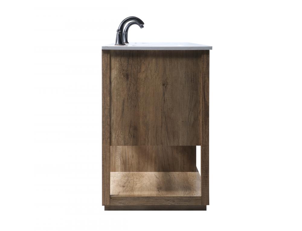 Featuring an open shelf at the bottom for extra storage, the vanity provides a convenient space to showcase decor or store essentials, adding functionality and style to your bathroom.