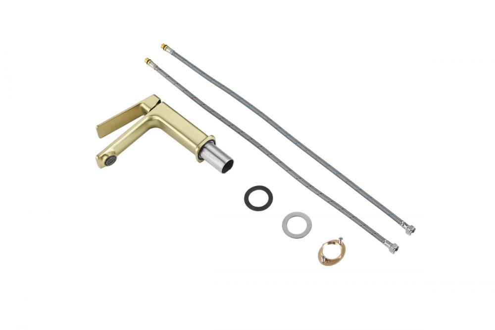 Our vanity faucet, featuring a single-handle design, ensures effortless water control for your convenience. Crafted from durable brass, this faucet not only resists corrosion but also brings a touch of contemporary sophistication to your vanity while promising long-lasting durability. With supply lines included, installation becomes a hassle-free endeavor, saving your valuable time. The handle's clear indicators for hot and cold temperatures make selecting your desired water temperature a simple and confident task. Standing tall, this compact faucet design is versatile and effortlessly complements various vanity styles. Its single-hole installation design ensures an easy setup without the need for complex installations or extra holes. Offering a maximum flow rate of 1.5 gallons per minute at 60 PSI, this faucet delivers a gentle yet efficient water flow, aiding in water conservation and reduced utility bills. Equipped with a single self-contained ceramic disc valve, this faucet ensures lasting reliability and precise volume and temperature control, ensuring a dependable performance for years to come.