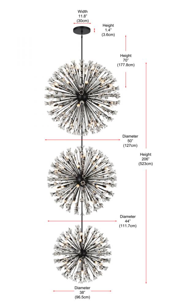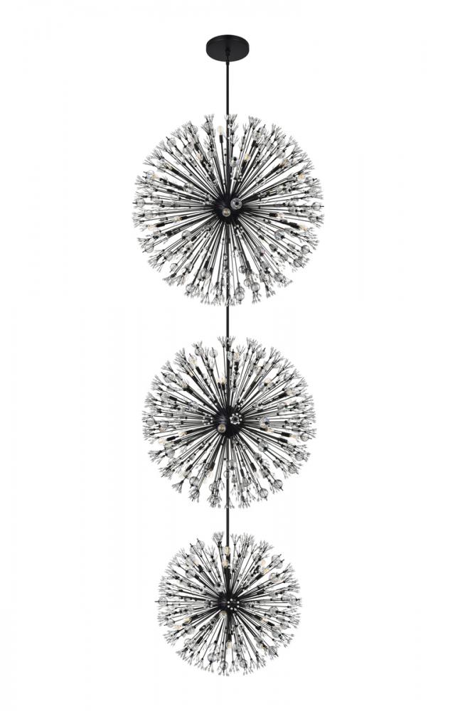 Vera 50 inch three tiers crystal starburst chandelier in black