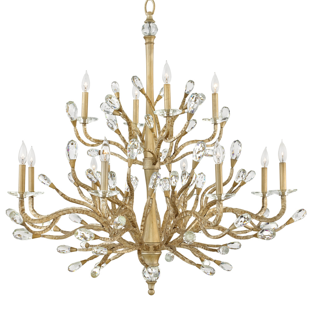 Eve's graceful, hand-forged tubing creates a natural, vine-like pattern in a hammered Champagne Gold finish while faceted clear crystal emanate from the tips.