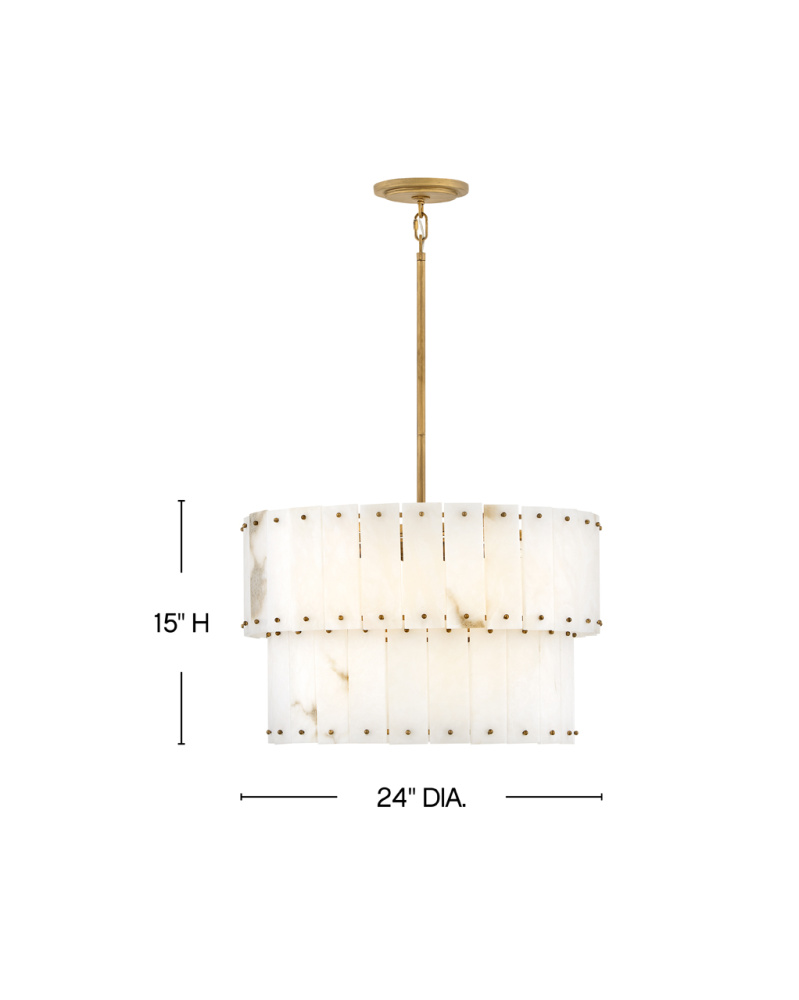 Simone has the timeless charm to infuse any space with opulent luxury. Fashioned with natural alabaster panels in a traditional tiered style, the effortless appeal speaks for itself. Perfect for dining rooms, foyers, and grand spaces, Simone is a conversation-starting piece that is truly a work of art.