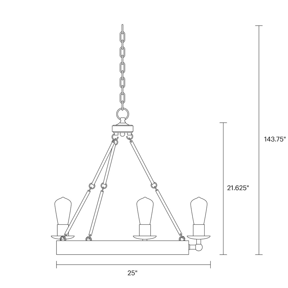 The Ravenwood Manor five light single tier chandelier in stardust is the perfect way to achieve your desired fashion or functional needs in your home. Offered in both round and rectangular silhouettes, the Ravenwood Manor lighting collection by brings an industrial, chic vibe to any interior and effortlessly replaces traditional chandeliers or linear suspension pieces with a much more unique, minimalist approach. From the crown of each fixture, linked rods descend to support the clean lines of the open central frame. The overall focal point is series of bare lamps in sleek sockets which are each set-off by the spherical detail of the bobeches to soften the overall rustic design. Choose antique Edison-style or medium base bullet lamps to create two, distinct looks. Offered in the Stardust finish, the full lighting collection includes a nine-light round chandelier, an eight-light rectangular chandelier and a five-light round chandelier.