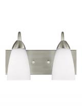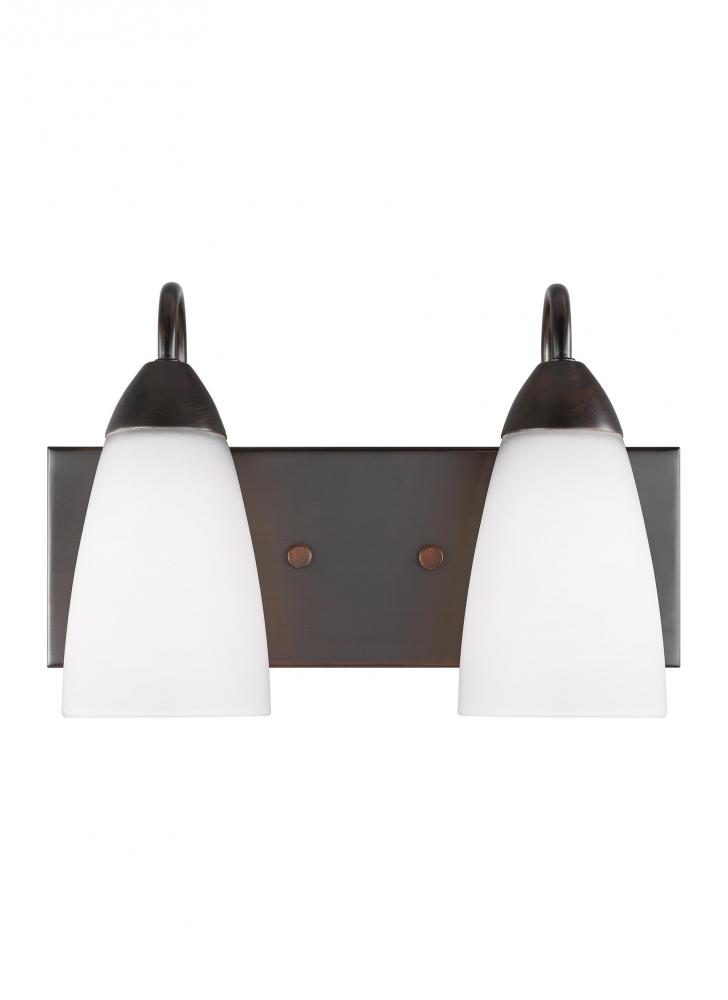 The Seville two light vanity fixture in bronze is an ENERGY STARĀ® qualified lighting fixture that uses LED bulbs to save you both time and money. The Seville collection represents commitment to high style at a sharp price. The modernist design is epitomized by the teardrop curves in the arms tipped by Etched glass diffusors throughout the chandeliers and bath fixtures. The collection offers a whole home lighting solution in every imaginable category. The assortment includes nine-light, five-light, and three-light chandeliers (either with up-light or down-light), pendants in four sizes as well as one-light, two-light, three-light , four-light and five-light wall/bath fixtures. Install a stylish and elegant addition to any room in the house. Seville is offered in Brushed Nickel and Burnt Sienna finishes.