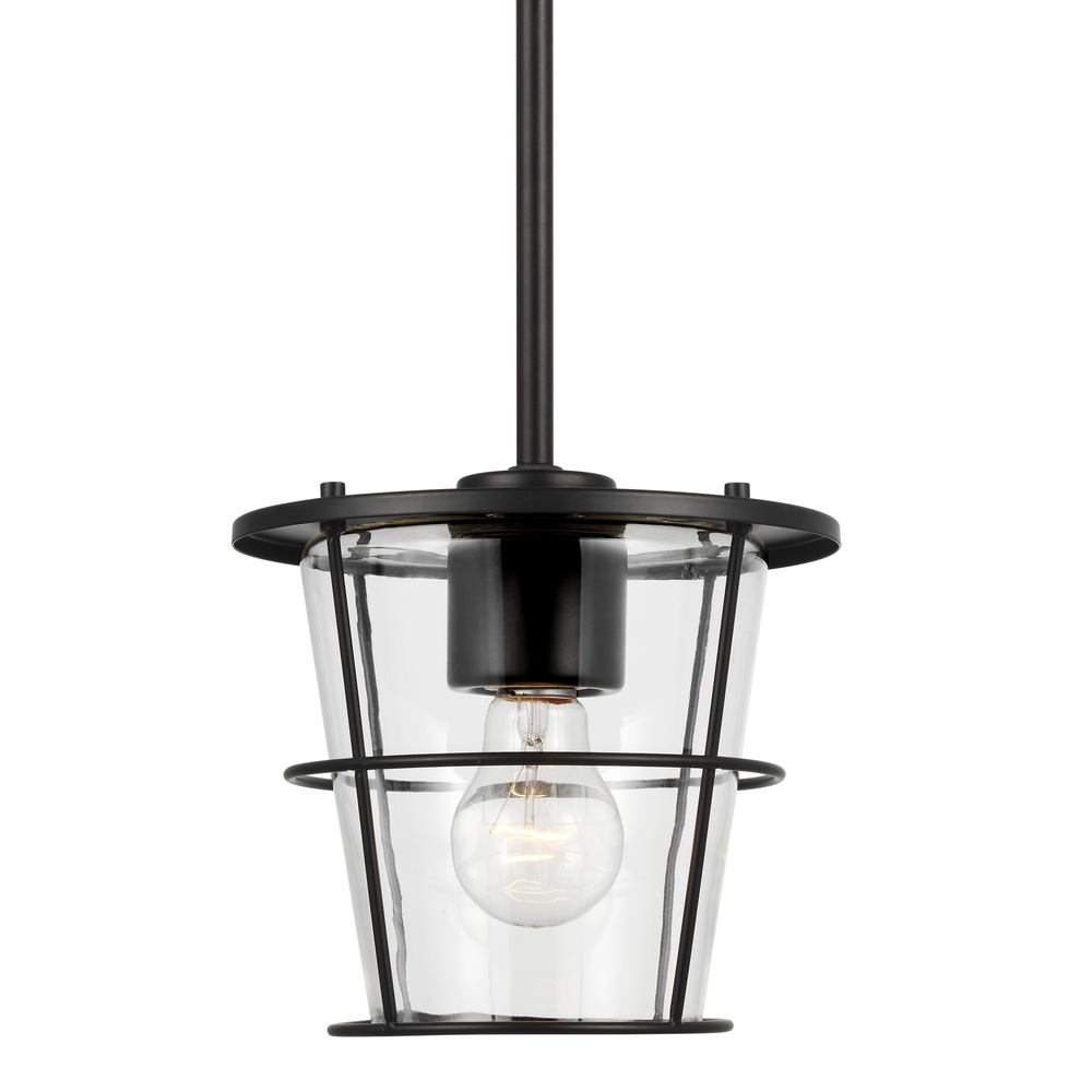 Transitional fixture with metal cage design will complement any dining room, kitchen or entryway