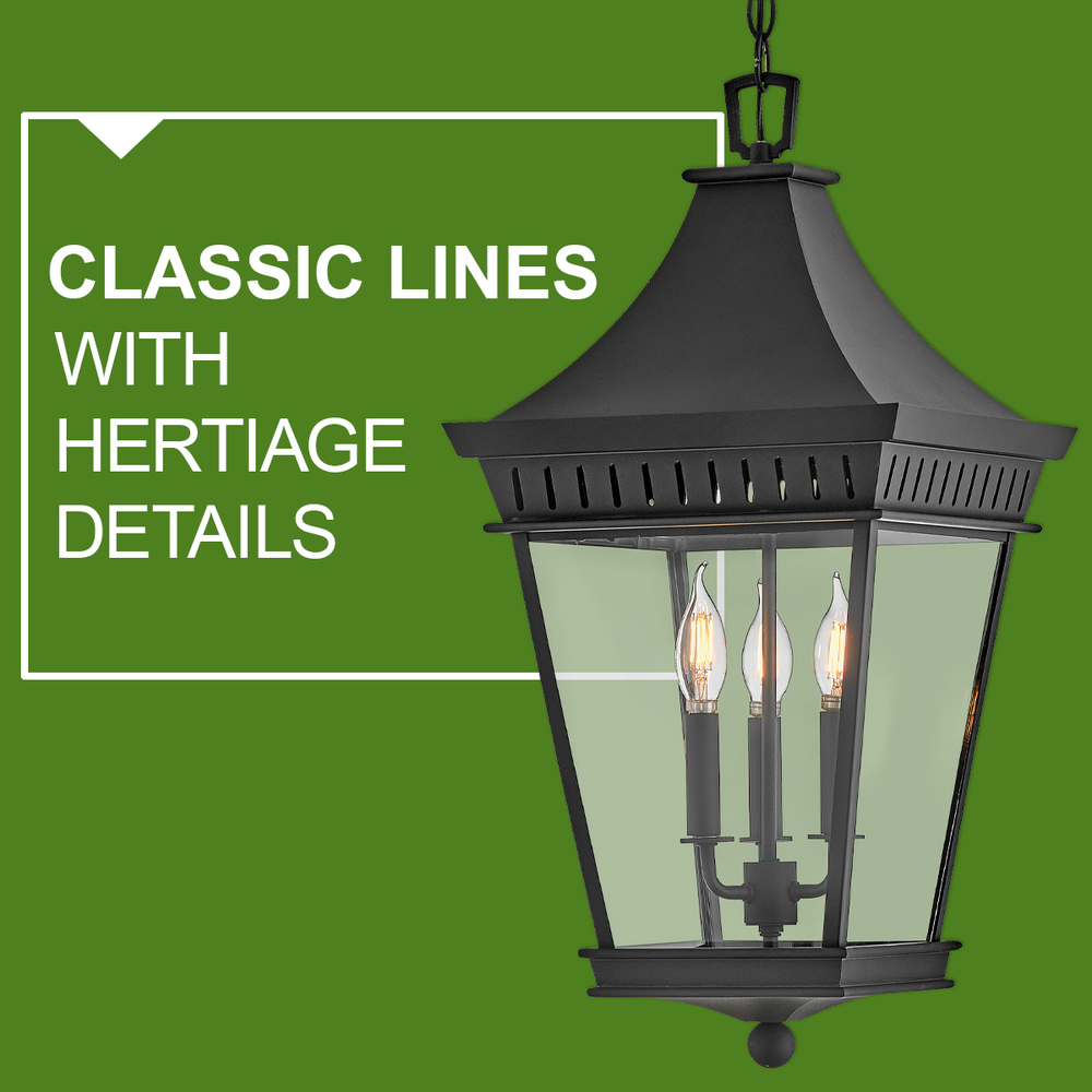 Drawing inspiration from the early American carriage house lantern, Chapel Hill emanates a feeling of nostalgia while radiating showstopping curb appeal. Highlighting classic finials, large clear glass panels, a steep roof, and angular lines, Chapel Hill serves as the perfect complement to traditional style architecture.