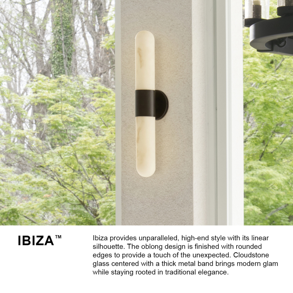 Ibiza provides unparalleled, high-end style with its linear silhouette. The oblong design is finished with rounded edges to provide a touch of the unexpected. Cloudstone glass centered with a thick metal band brings modern glam while staying rooted in traditional elegance.