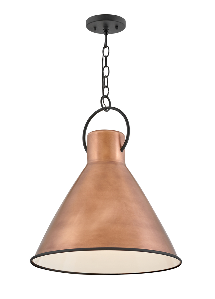 The profile is simple, hardworking and meant to reflect the farmhouse style it complements so well. A metal shade in a variety of finishes, featuring a bottom ring and an oversized loop in Distressed Black. Wiring is threaded through the loop instead of being exposed, which ensures the look remains clean, casual and tasteful.