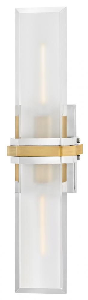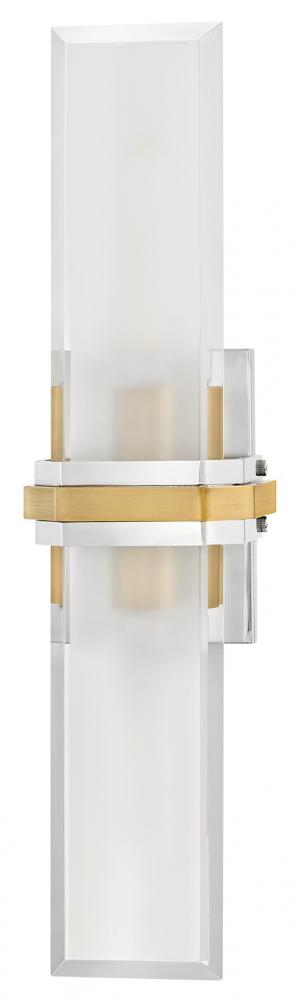 Intriguing and chic, Kipton’s captivating design showcases beveled clear glass surrounding a frosted, etched front, creating a soft and varied effect. A cast central cuff and minimalist back plate create a versatile, transitional style with a classic two-tone finish.