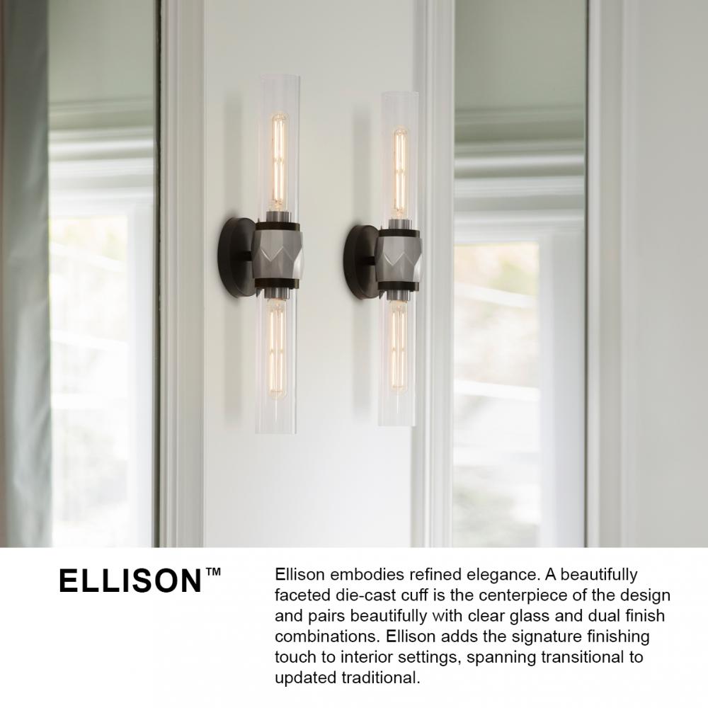 Ellison embodies refined elegance. A beautifully faceted die-cast cuff is the centerpiece of the design and pairs beautifully with clear glass and dual finish combinations. Ellison adds the signature finishing touch to interior settings, spanning transitional to updated traditional.