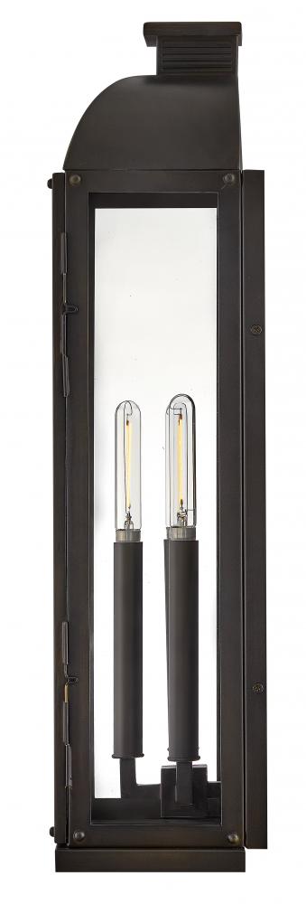 Paying homage to the charm and elegance of Southern colonial aesthetics, Tiverton is a contemporary interpretation of traditional gas lantern design. The rounded silhouette, composed of solid brass, features an arched roof with louvered molding, tall glass panes, and a hinged door for style and function. The rubbed Dark Oxidized Brass finish creates a dramatic, subtly distressed appearance that complements both classic and modern décor.
