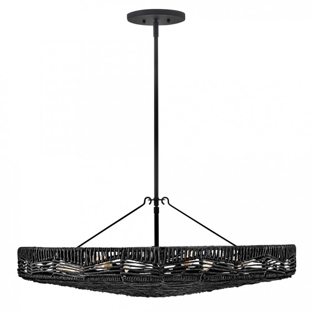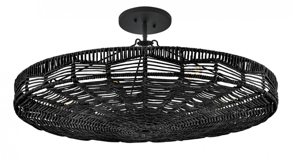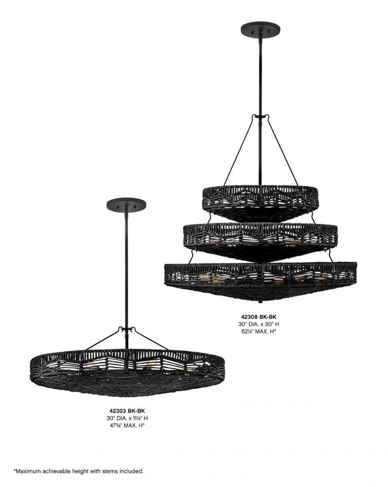 This dazzling design offers striking illumination through a beautiful handwoven pattern. Ophelia radiates with organic elegance as a natural shade adorns a tiered basket frame finished in Black.