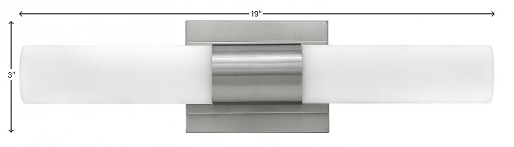 Portia's slim profile unifies design and technology. A pair of blown etched opal glass cylinders extends from a center metal fixture body, creating a streamlined cylindrical form. Finished in either Brushed Nickel or Polished Nickel, this eco-efficient linear LED collection is fully dimmable and provides even, warm white light. The raceway back plate and optional junction box cover plate provide multiple mounting opportunities.