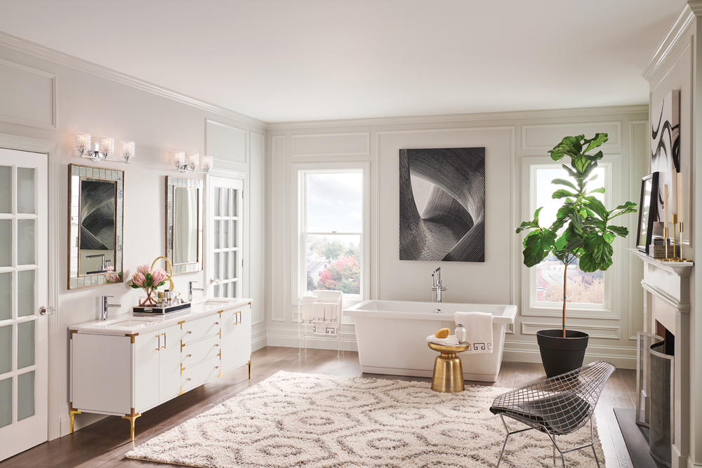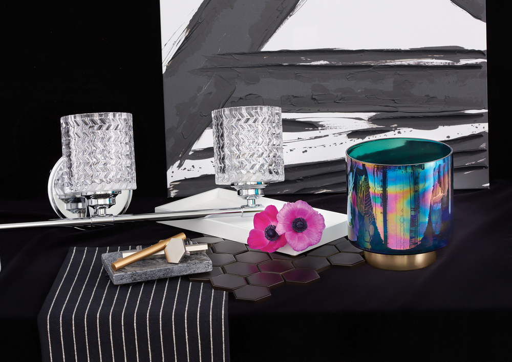 Traditional elegance with a modern edge defines Elle’s graceful design. Rich chevron cut glass provides interesting light refraction and is a dramatic focal point whether the light is on or off. The gleaming metal finish adds to the glam design that gives a touch of radiance to any space.
