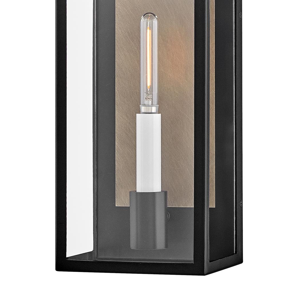 Inspired by traditional colonial lanterns, Campbell’s carriage house styling complements classic architecture accentuated by a bold arched roof and a cast top ring. Candelabra lamps with contrasting warm white candle sleeves are enhanced by a Black with Burnished Bronze finish and a reflective backplate.