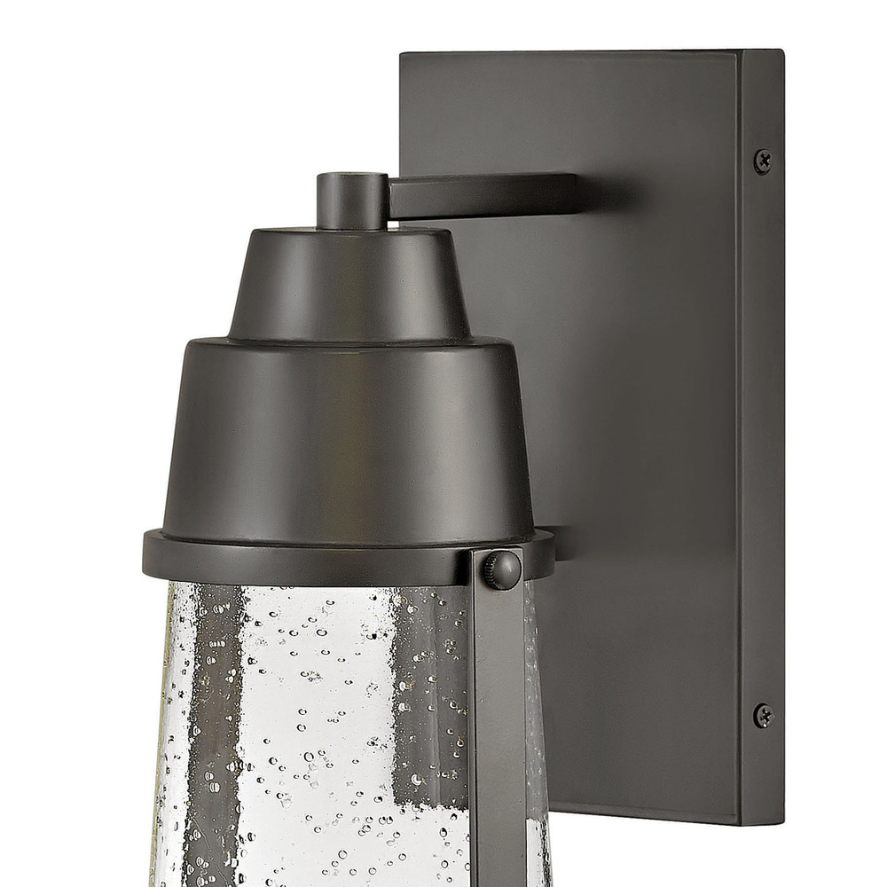 The transitional style of Miles channels a nautical vibe, but is equally at home in all settings. An LED JA8 bulb is included while a layered cap and backplate enhance the style. The bold, Black Coastal Elements finish and clear seedy glass add a glowing touch that is versatile enough to perfectly accent any décor.