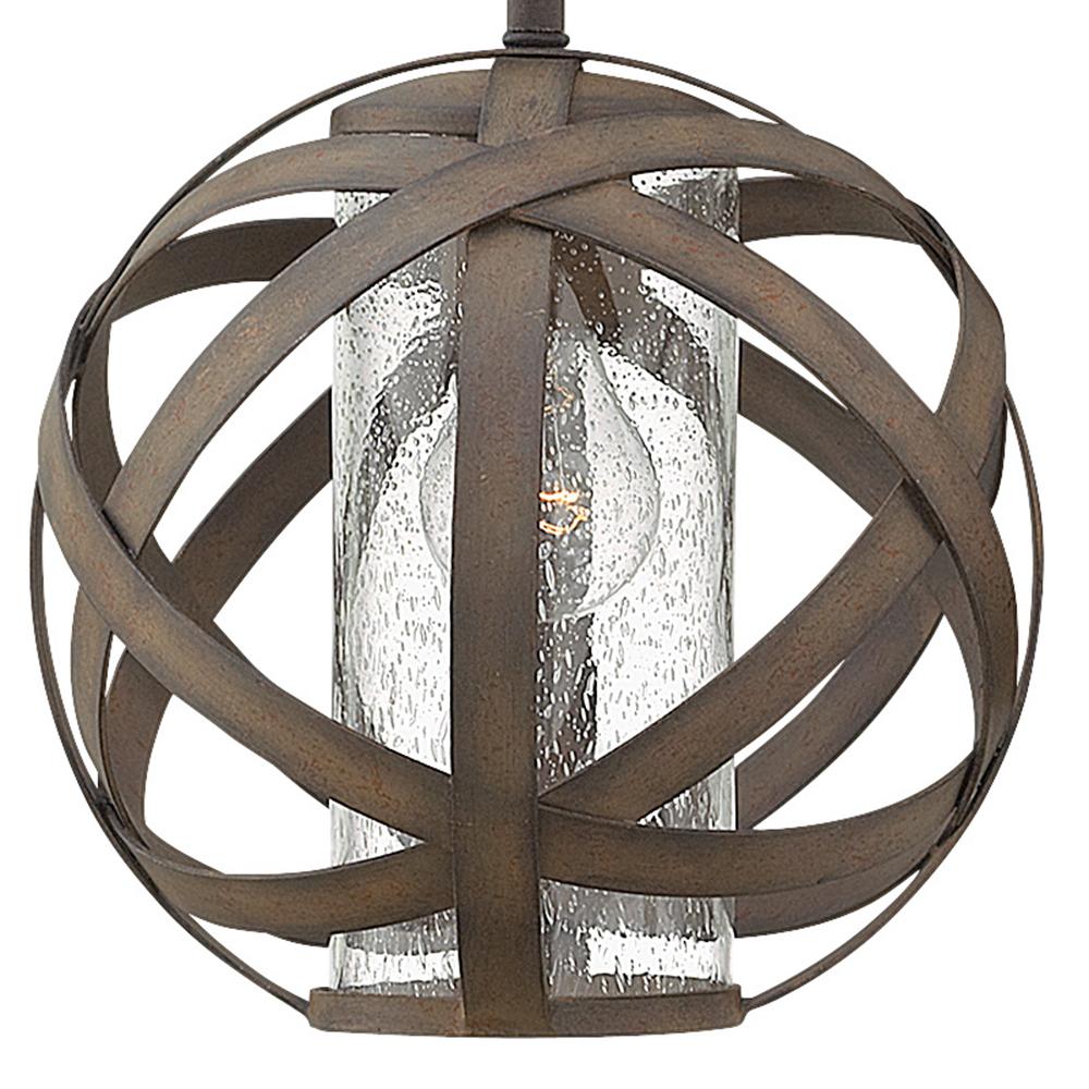 Carson features bold overlapping metal ribbons of Vintage Iron, enhancing an outdoor living area with style and substance. The handcrafted pendants combine a hint of industrial sophistication with the allure of artisan craftsmanship.