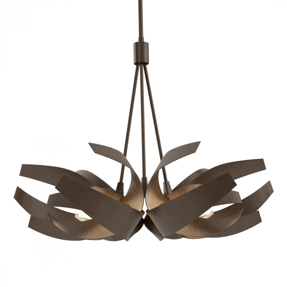It's a piece that garners attention for any room in need of high-end design. This pendant is handcrafted by Vermont artisans who shape forged steel into gentle curves before assembling. A golden glow is delivered via clear/frosted glass diffusers that give the impression of warmth.