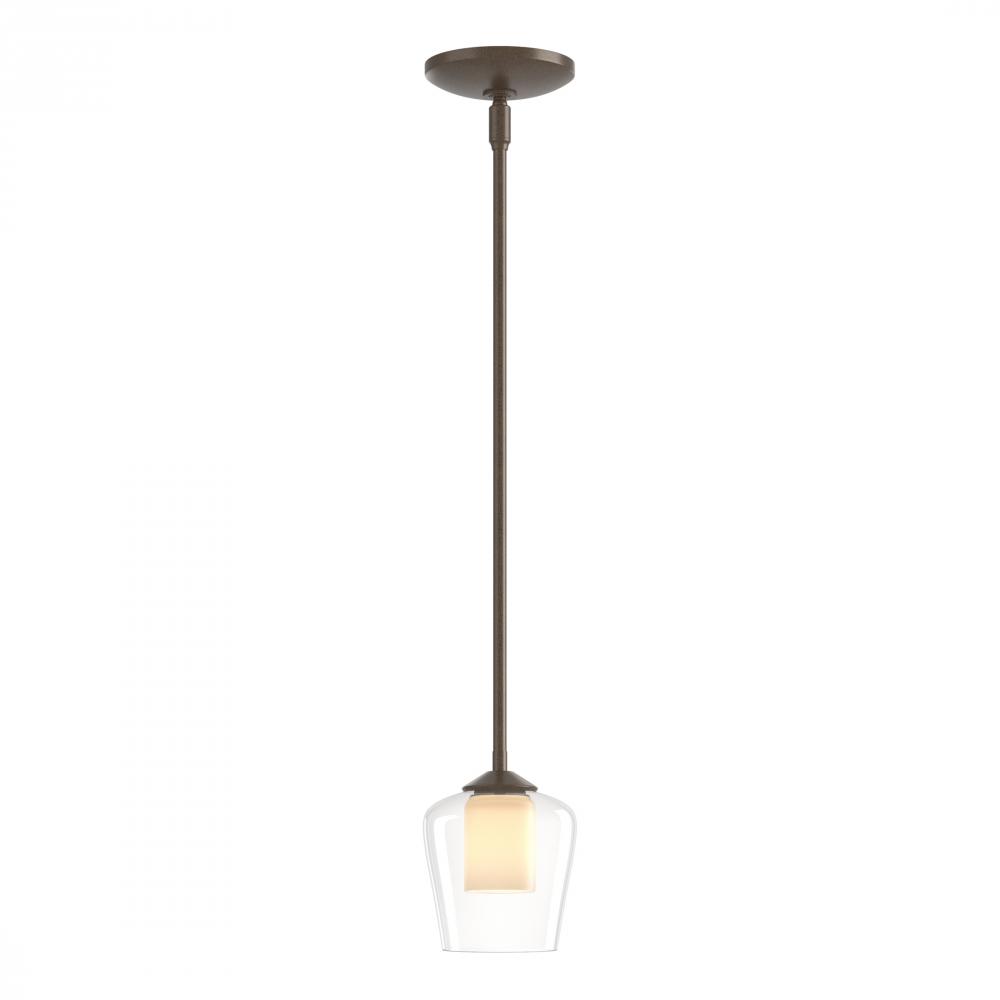 Our Simple Mini Pendant delivers exactly as described. A straight metal rod joins to curved glass with a second glass within. Perfect for complementing a design without stealing the show. American-made by Vermont artisans.