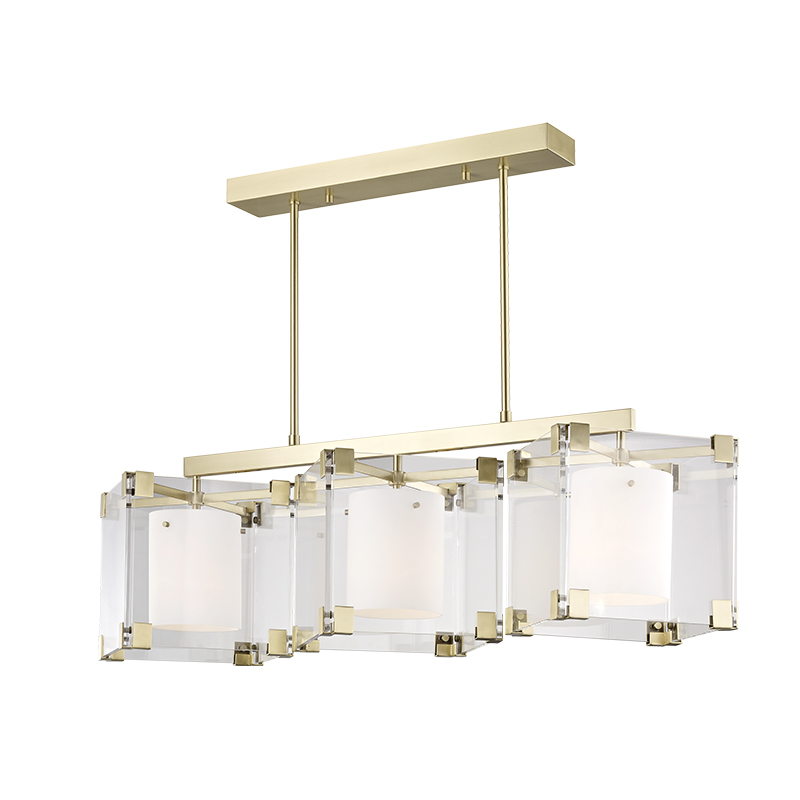 We have a weakness for acrylic—call it our Achilles’ heel. Taking inspiration from a genius piece by a French designer of the fifties, we swapped out the original’s green glass for transparent acrylic. The opal matte diffuser is a smooth cylinder suspended on three pins. Sure to inspire Lucite lust in even the most dedicated traditionalist, Achilles is a beautiful piece, stunning with brass accents, effortlessly cool with nickel.