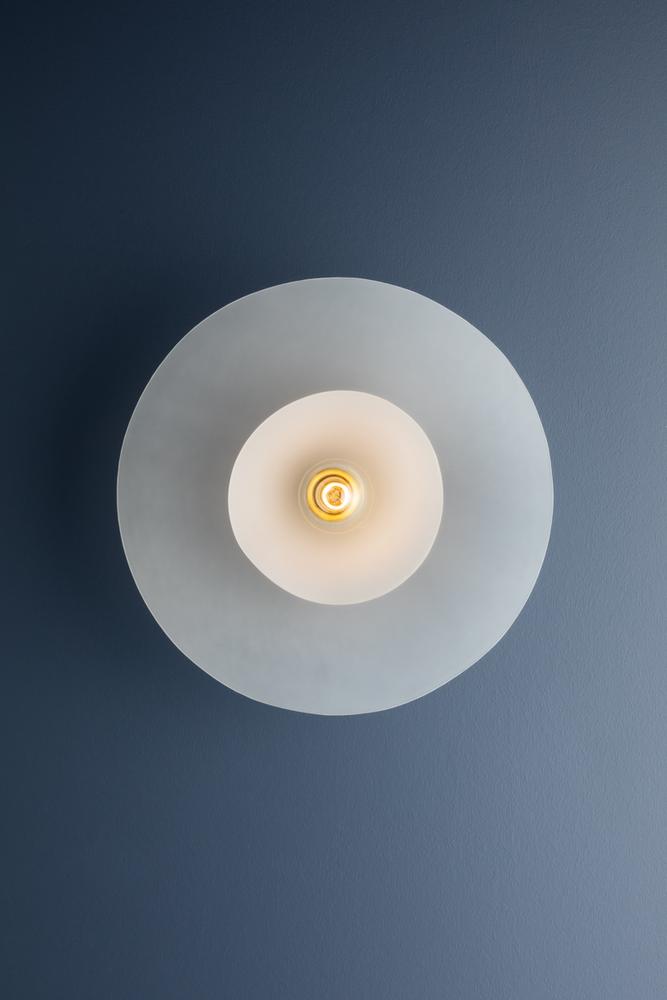 Two shallow, undulating glass shades are nested together to create the dynamic, flowing silhouette of Netherlee. This ethereal flush mount is inspired by a flower in bloom, bringing an organic, artistic touch to living and dining spaces. The Aged Brass ceiling canopy complements the airiness of the shade with a luxe quality.