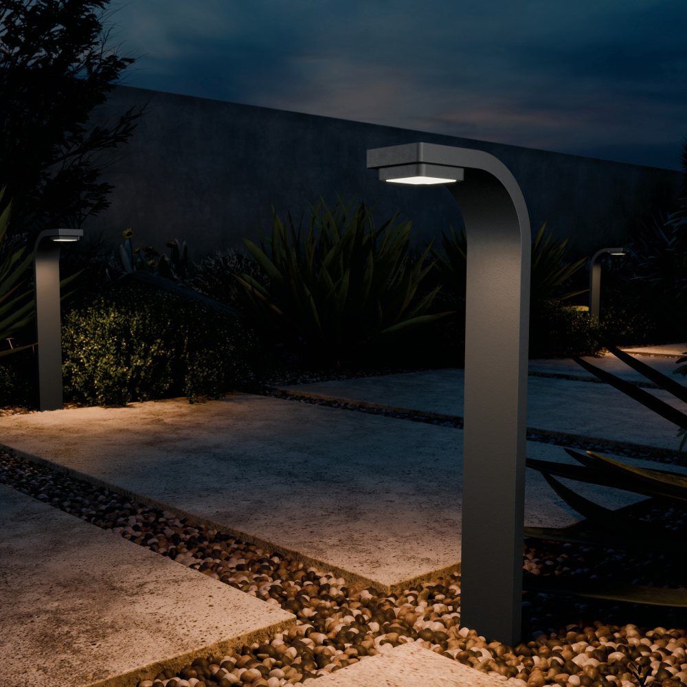 Its sleek, flowing curves and wave-like form contrasts beautifully with right angles seen in clean, modern designs. Delivering a warm white light to pathways and crafted to withstand the elements, the Curved Path Light is a beacon of light and style.