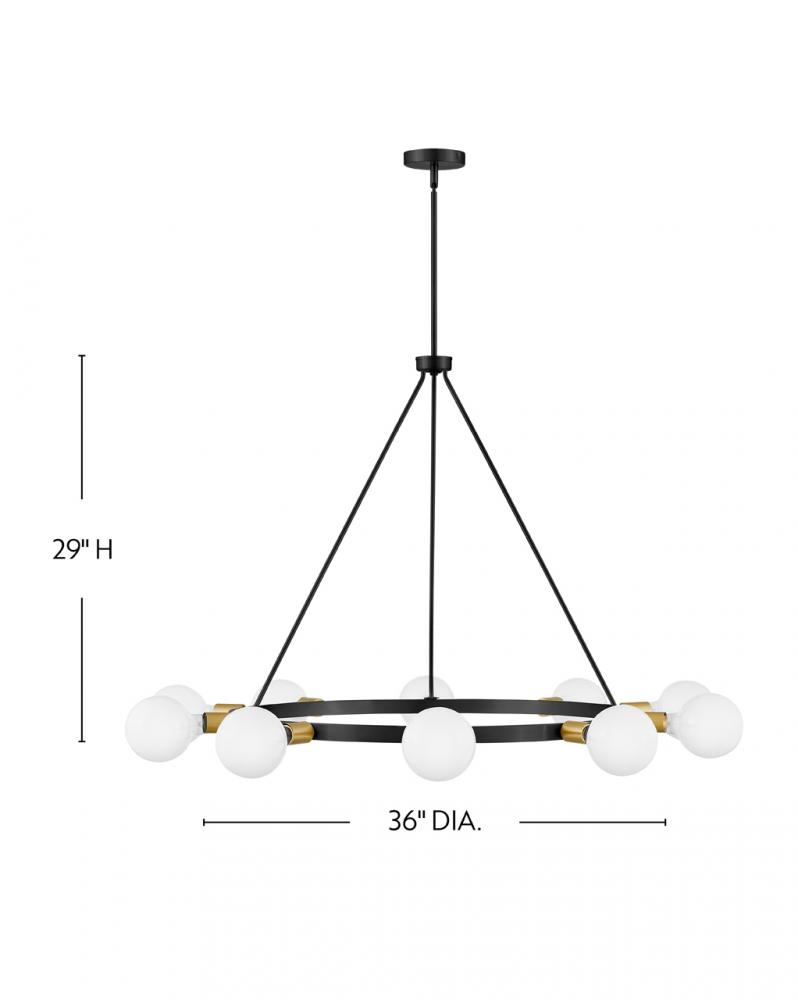 A mid-century modern vibe with a glimpse of Hollywood glam? Yes, please. Orla brings the dimensional interest with multiple plays on circles and globes. The streamlined profile is simple, with each individual element contributing to the overall silhouette in a big way. Available in Lacquered Brass or Black with Lacquered Brass accents, Orla makes a prominent style statement. G-style bulbs recommended.
