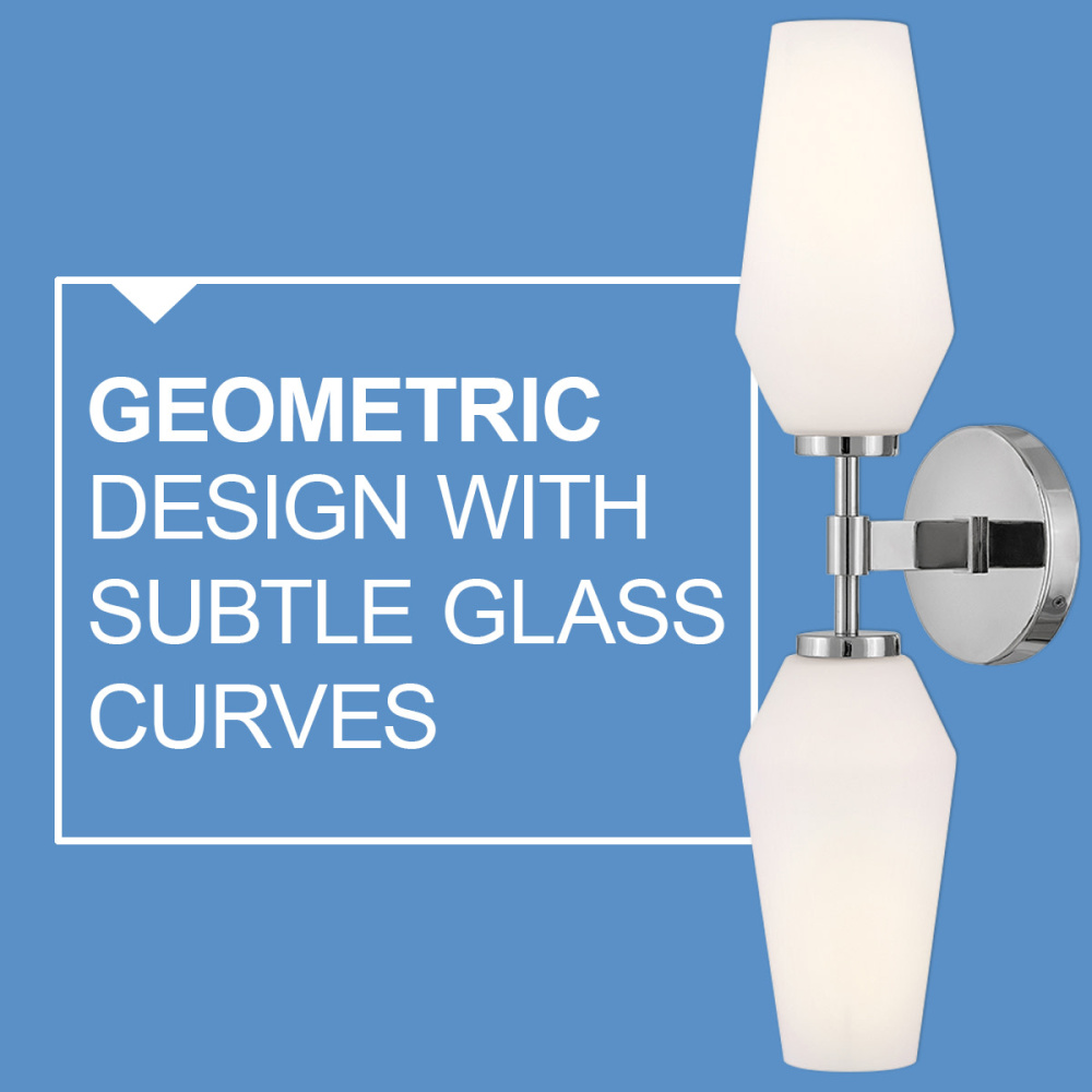 Create a refreshing mood with just the right touch of glamour. Gio's captivating geometric design with subtly curved, etched or cased opal glass brings enchanting style to your bath or living space.