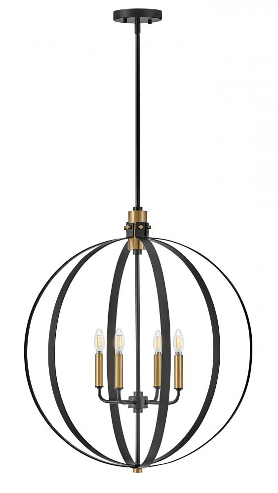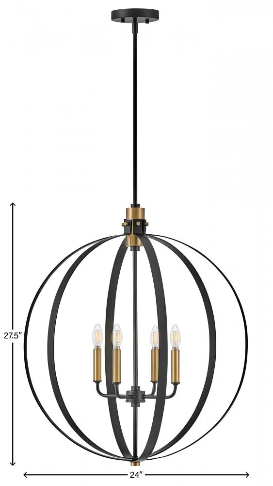 Add modern whimsy to your space with Cirque. The unique open air, orb-shaped design is emphasized by flat metal bands in a striking Black finish finessed with Lacquered Brass accents. Style Cirque in a variety of spaces – wherever you’re looking to add an air of the unexpected.