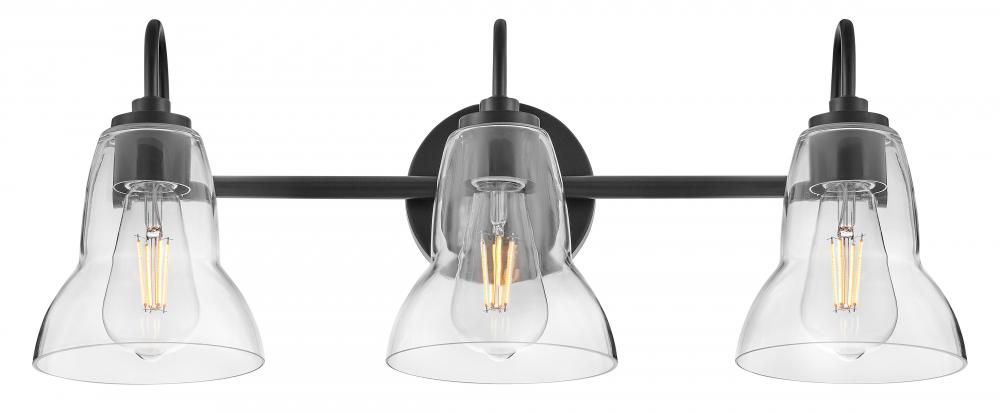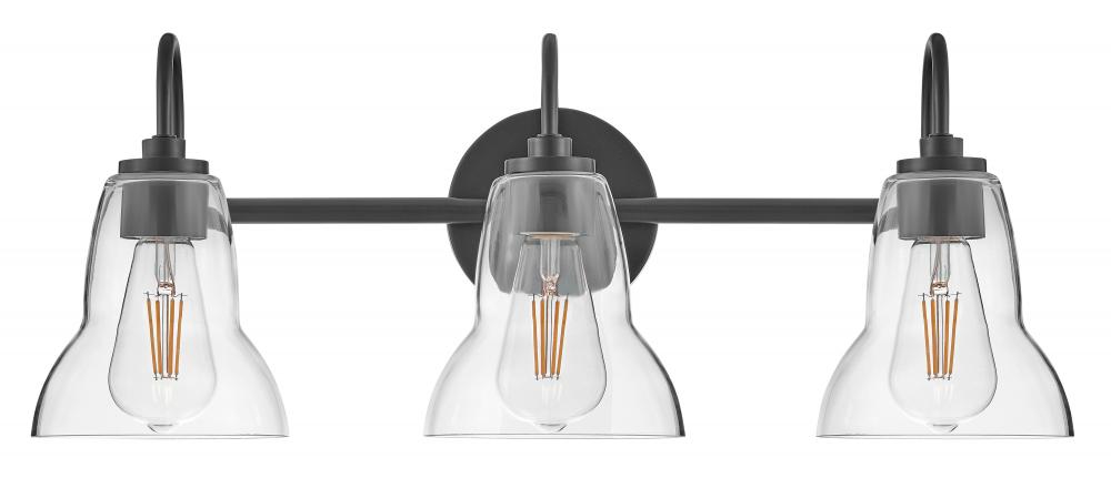 Vera’s unique, shapely form takes the traditional bell-shaped shades to a new level. Plenty of light shines up or down from the clear glass, making it a functional choice for main baths and powder rooms alike. Finished in Black or Lacquered Brass, Vera’s chic profile brings transitional style to any space.