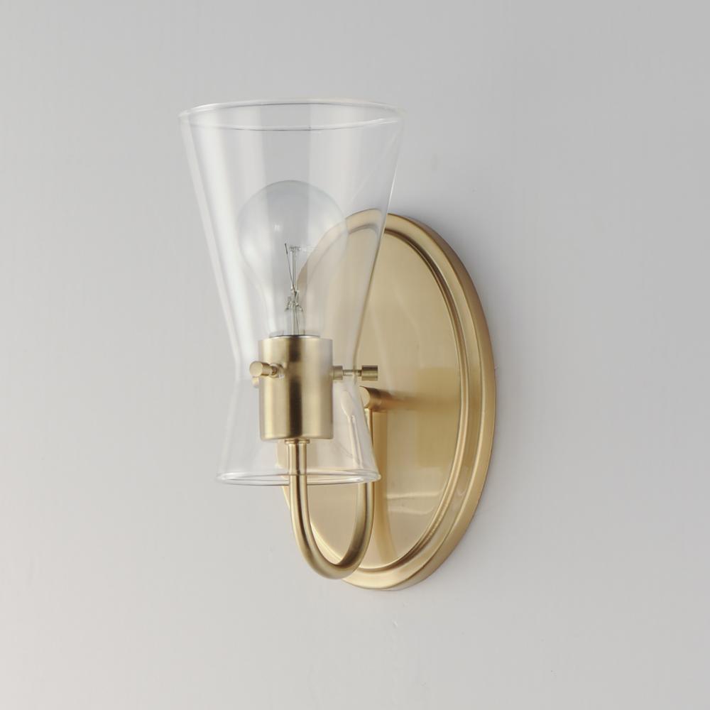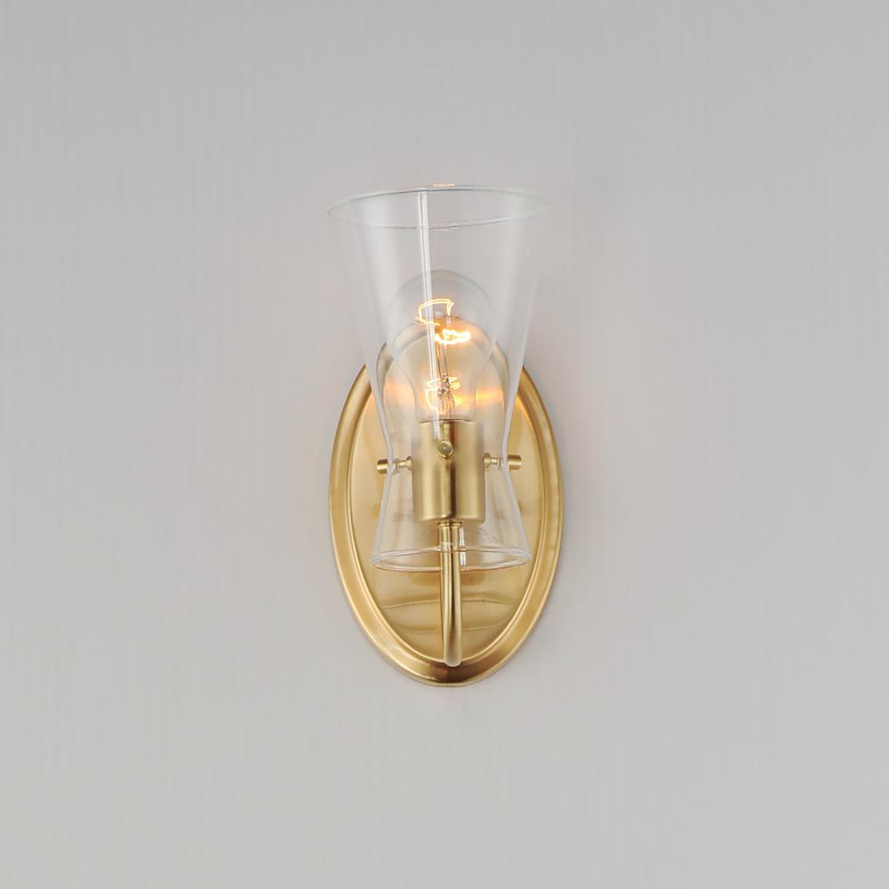 Suspended by three pin connections, the sharp silhouette of Ava's angular glass provides a designer look to enhance your bathroom design. Using Clear glass and a variety of complementary metal finishes the sconces are available in Black, Polished Chrom