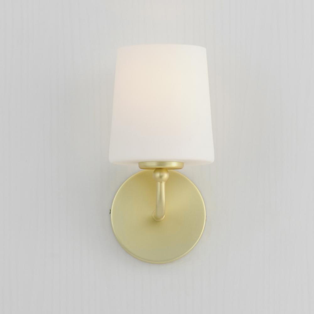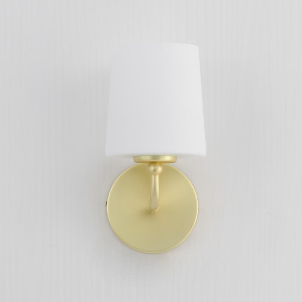 Understated elegance and convenience in its design, the simple curved arms of the Bristol collection outstretch in elongated proportions that terminate at a tapered Satin White glass shade. Designed to emulate a traditional fabric shade, the material being