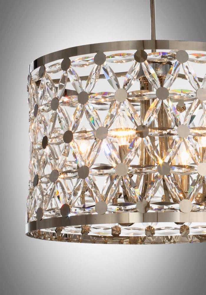 Petals of Beveled Crystal create a brilliant display housed in a Polished Nickel frame. This elegant collection spans many design genres from modern to traditional and will enhance a wide variety of room decor.