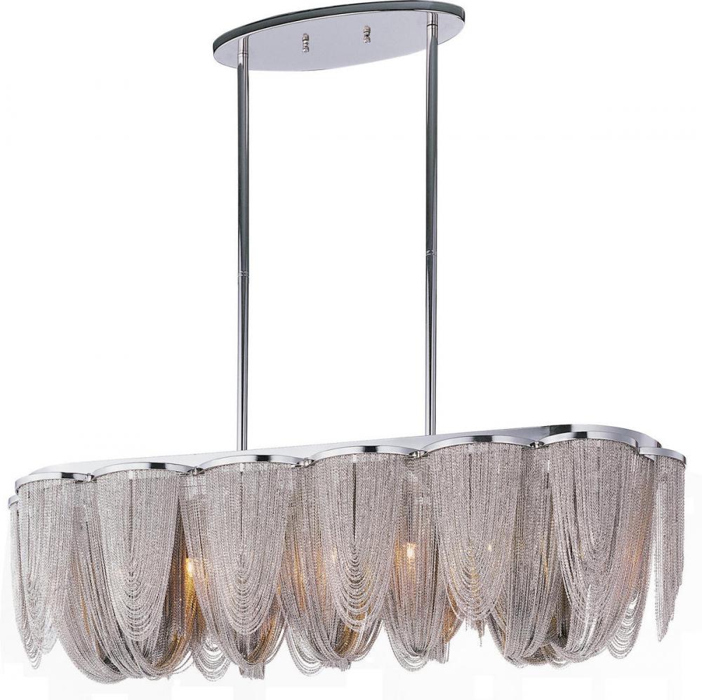 Chantilly collection features metal frames gracefully draped with Nickel finished jewelry chain. Metal trim rings of Polished Nickel add sharp contrast to the softness of the chain, which conceals the xenon light source.