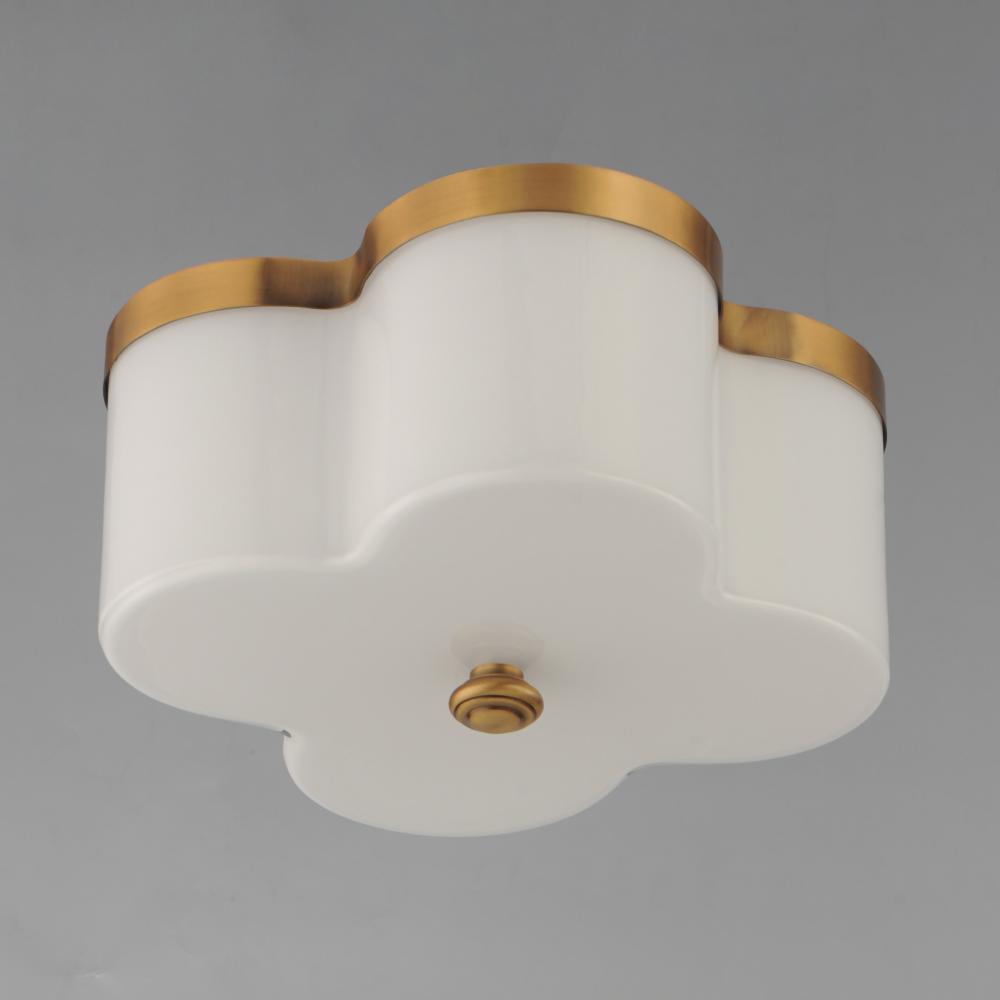 Honoring the traditional scalloped shade design in a range of materials, flush mounts are available in your choice of fabric, metal, or glass shades. The fabric shade features an Off-White linen fabric and is accented with Aged Brass metalwork. In the glas