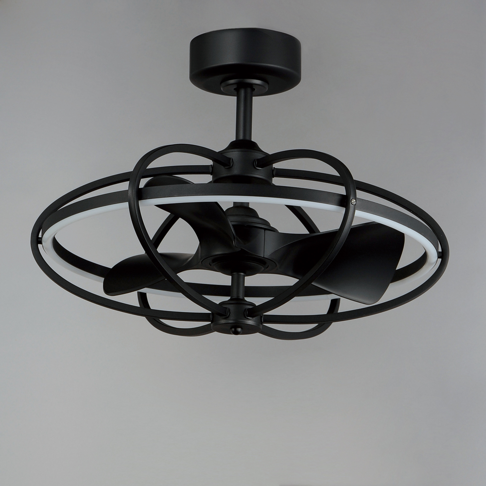 Taking the standard fan to the next level, Fandelights such as this one house a Wifi-enabled fan within a decorative chandelier frame. This transitional look features a minimalistic frame finished in your choice of Matte Black or Satin Nickel and a downwar
