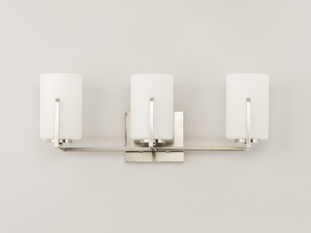 Inspired by the Modernist architect Edward Dart, this collection features straight line frames finished in Satin Brass, Satin Nickel, or Matte Black that support Satin White glass cylinders for a clean and modern look. The frames' ends turn up before t