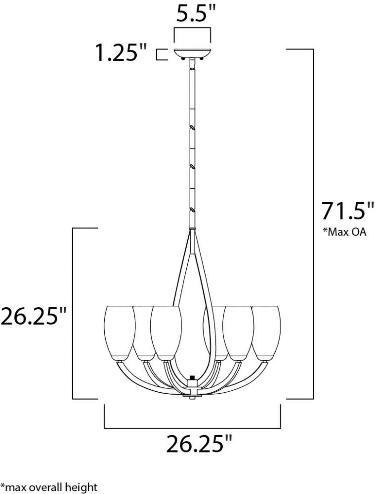 Heavy arms sweep up from the bottom of a large teardrop center column to support the tall Satin White Glass shades of the Élan collection. The choice of elegant finishes includes Textured Ebony or Polished Chrome.