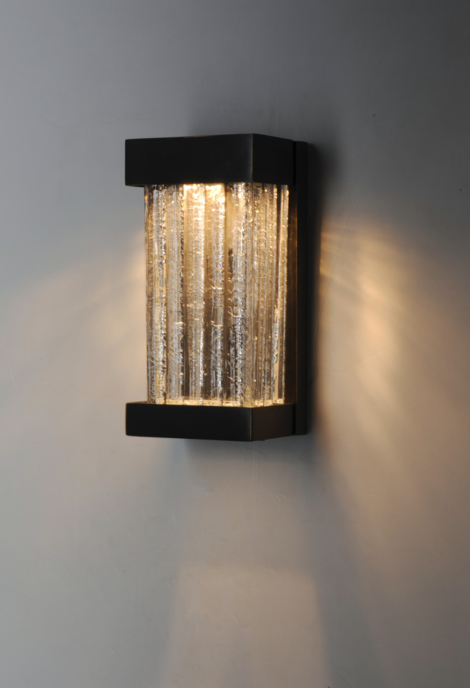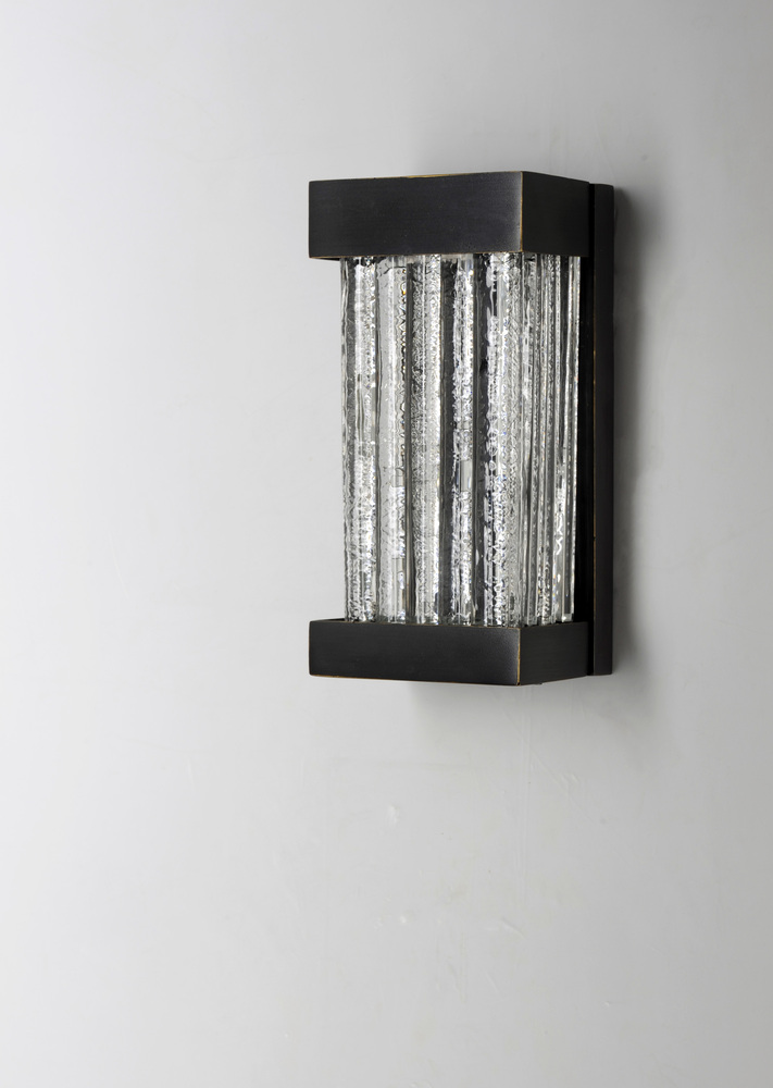 Handmade Clear glass rods are fused to an inner glass concealing an LED light source. A frame of weather resistant Vivex finished in Bronze gives this collection the perfect combination of durability and energy efficiency.