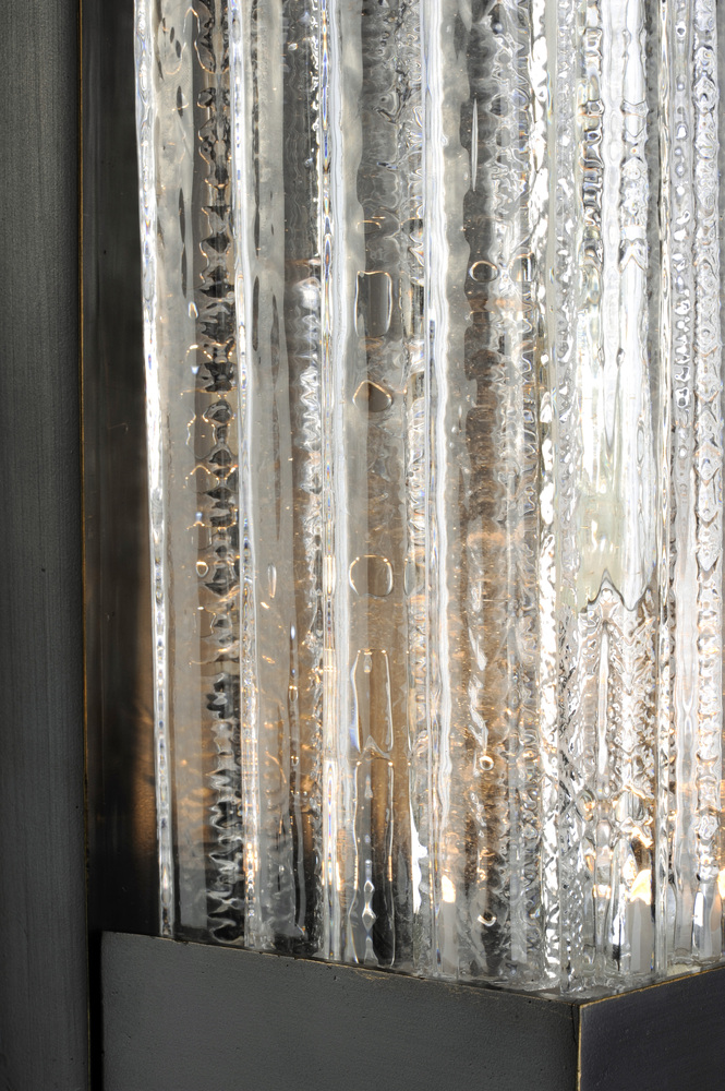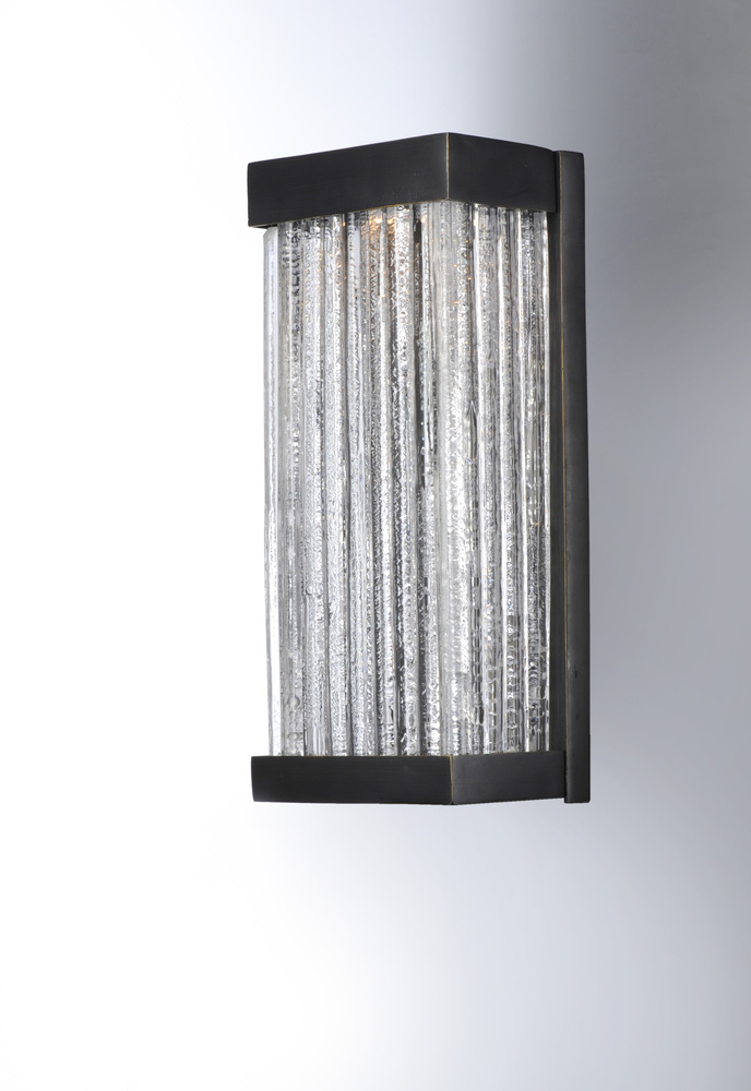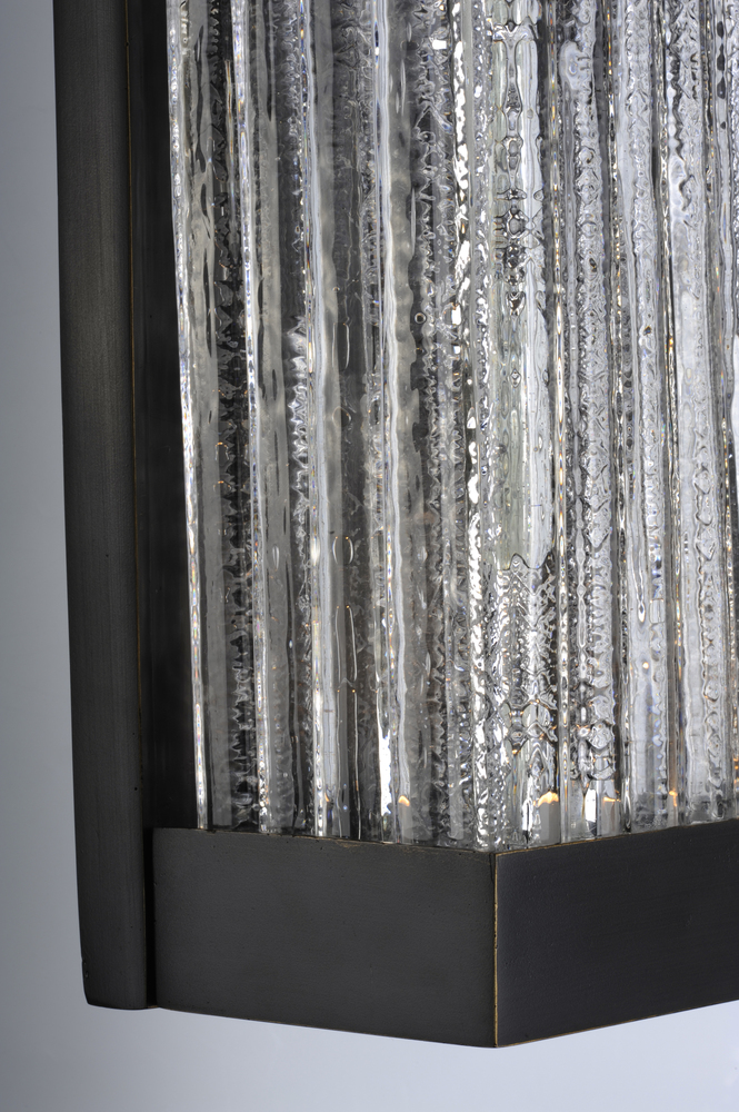 Handmade Clear glass rods are fused to an inner glass concealing an LED light source. A frame of weather resistant Vivex finished in Bronze gives this collection the perfect combination of durability and energy efficiency.